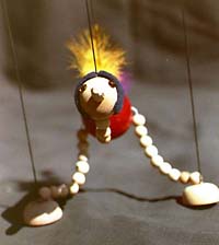 Now YOU can Own![]() This charming 4-stringed marionette is a sheer delight for young and old alike. Nine inches tall and made entirely of wood, this gangly guy is there to brighten up your day. So simple to operate, but so versatile. The more you practice the wider his range of activity. |